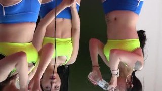 Taut leggins and a swollen, shaved pussy (Dildo at the end).