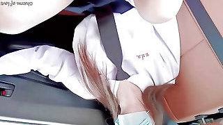 Young girl in school uniform faps in car