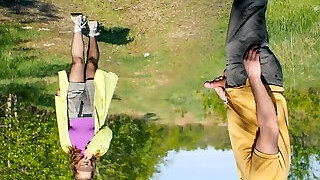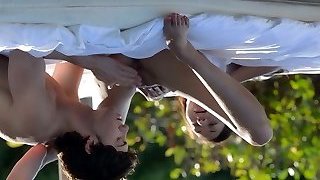 Divine beauty plays with stranger's man rod in the outdoors
