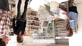Uber-sexy Japanese store clerk gets fucked by Trio customers during opening hours