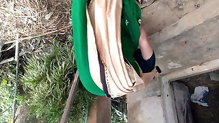 Busty Sister-in-law pissing and fingering on a farm outdoors
