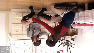 Pantyhose Leg Licking Lesbo Scene of a Girl Who Looks Good With Beautiful Legs in Long Boots