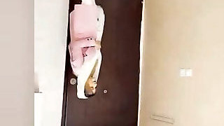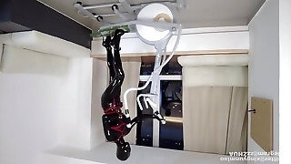 Girl first attempt in wearing latex with high heels, bondage and breathplay